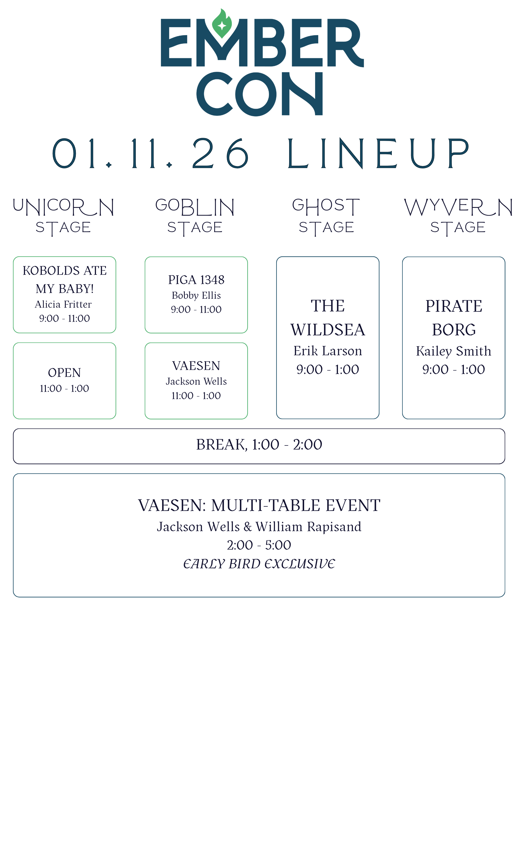 This is the big finale of Ember Con 2026 and we are excited to run the conventions FIRST EVER multi table event! We will be running a modified version of “A Treaty of Blood” from the Mythic Carpathia adventure module.